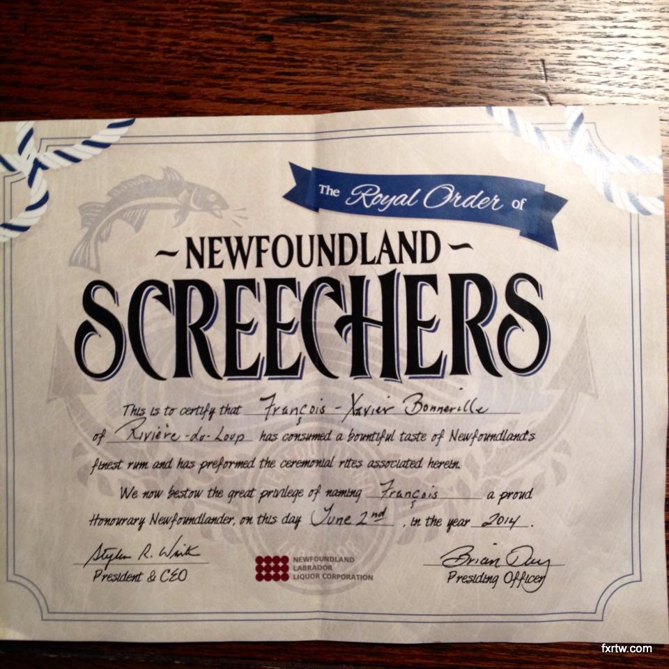 After visiting Cape Spear, I came back to St-John’s to check in at my hostel. I took the afternoon to drive around town and organize my stuff. First thing I knew, it was 8pm and time to get something to eat. I went to George St. and sat in a place called Sundance: if you see a waitress running (literally) around to make sure you have good service, her name is Victoria. I met other really cool local people with who I spent the rest of the night. It’s crazy how you can relate to people even when you are that far. Austin who was also an engineer previously worked with one of my friends from undergrad: Tony Schryer. We then all moved to another bar called Christian’s. There I had the opportunity to become an official Newfoundlander after being Screeched in. Not to unveil all the secrets, but let’s just say that it required us to kiss a fish at some point.