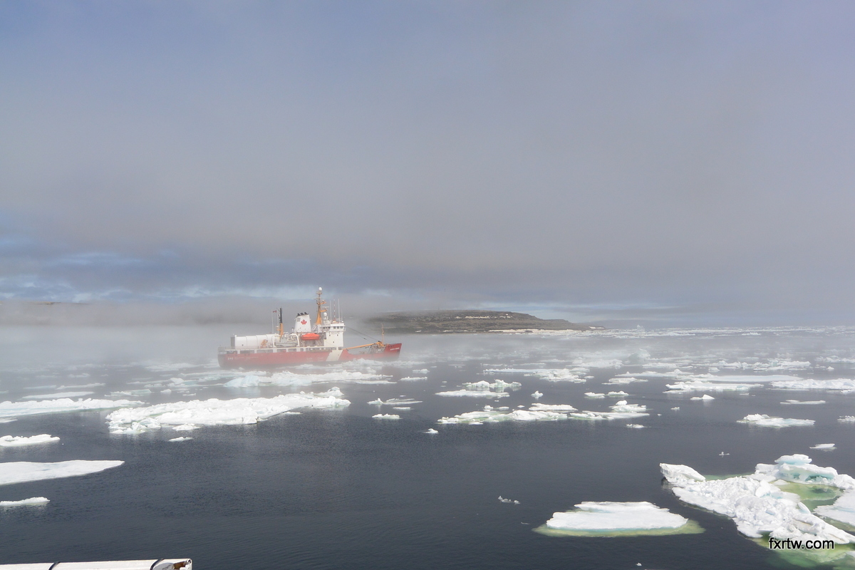 Road up to Labrador ferry was easy and scenic. I crossed path with a moose that I saw more than 500m away so I could get my camera ready and get closer to take a good picture. I arrived in St-Barbe at 11:30am and the ferry left port around 1pm. It took a little more than 90min to cross to Blanc-Sablon and we had to go through quite a bit of ice. In the bay of Blanc-Sablon, we were actually behind an icebreaker from the coast guard.
