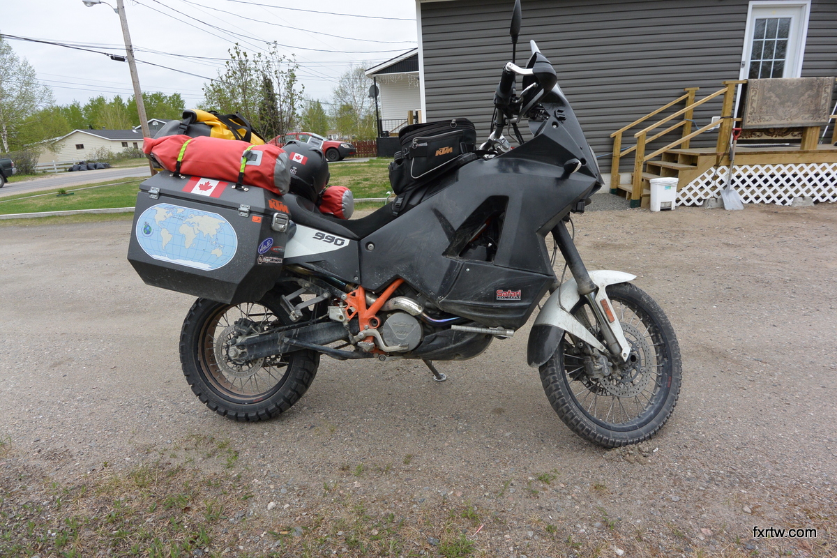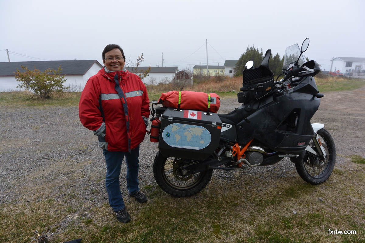 It was 3C out when I finished a great breakfast with my awesome host at Curl’s B&B. My bike wouldn’t start as I installed a lithium battery (I will think about a replacement). It started right up with some boosting amps. My map then got signed for Labrador and off I was to Goose Bay. I arrived 6 hours later; a bit cold as temperature stayed below 8C and I got soaked for about half the distance.