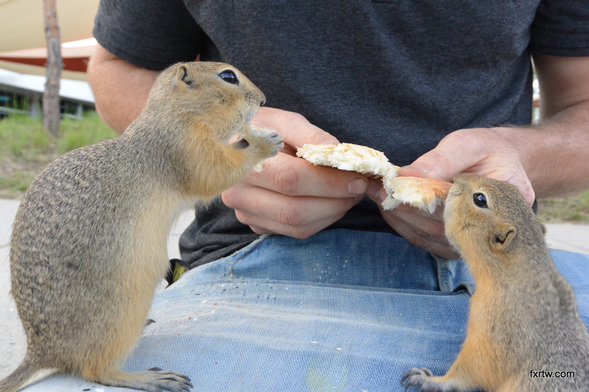 Guy feeding prairie dogs