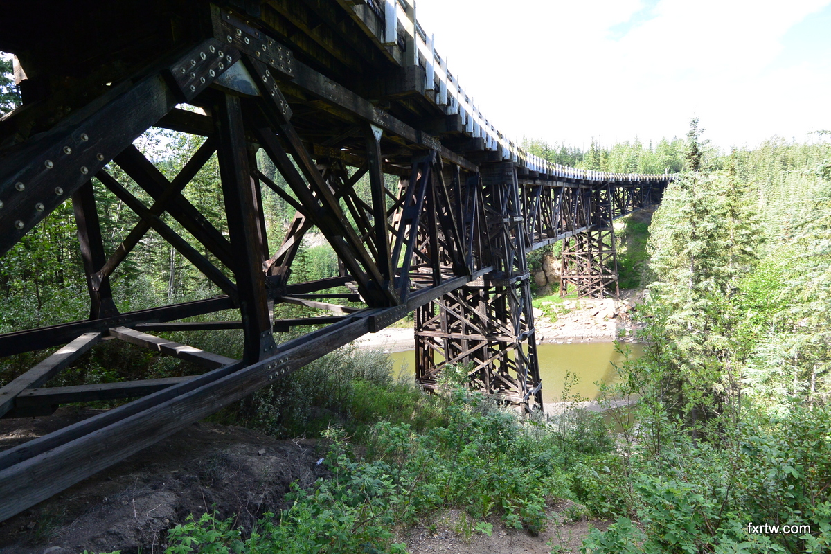 Next destination was a small place called Fort Nelson. Once again, not much to see along the way, but road were well maintained. It was quite the engineering project back in the days when they built this highway up to Alaska. Some of the original bridges are still standing today and this curved wooden bridge was well built.