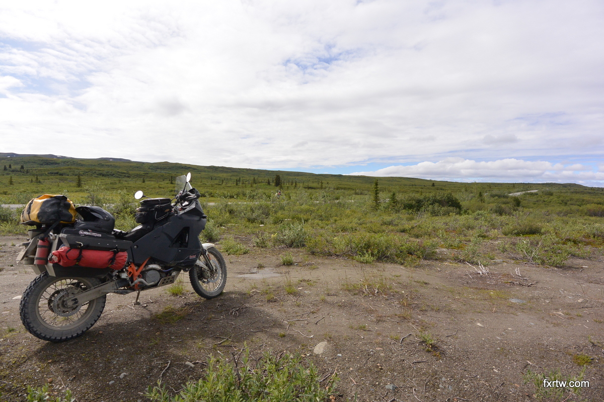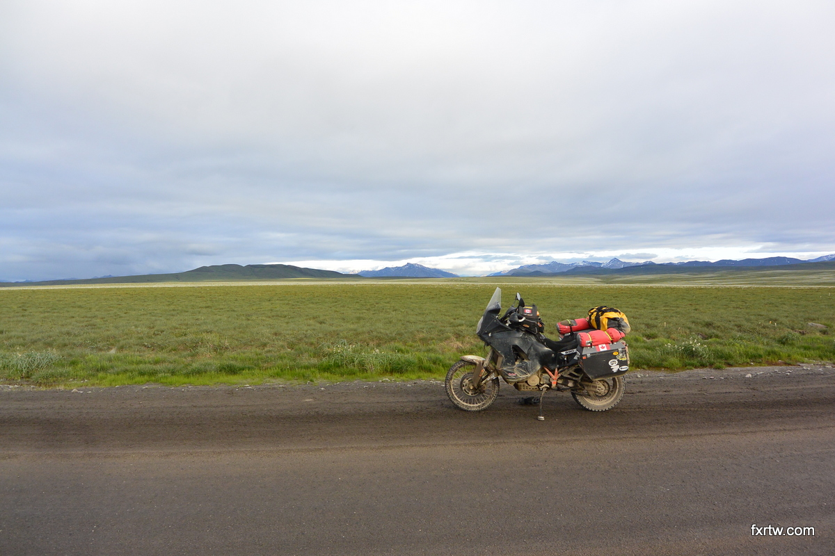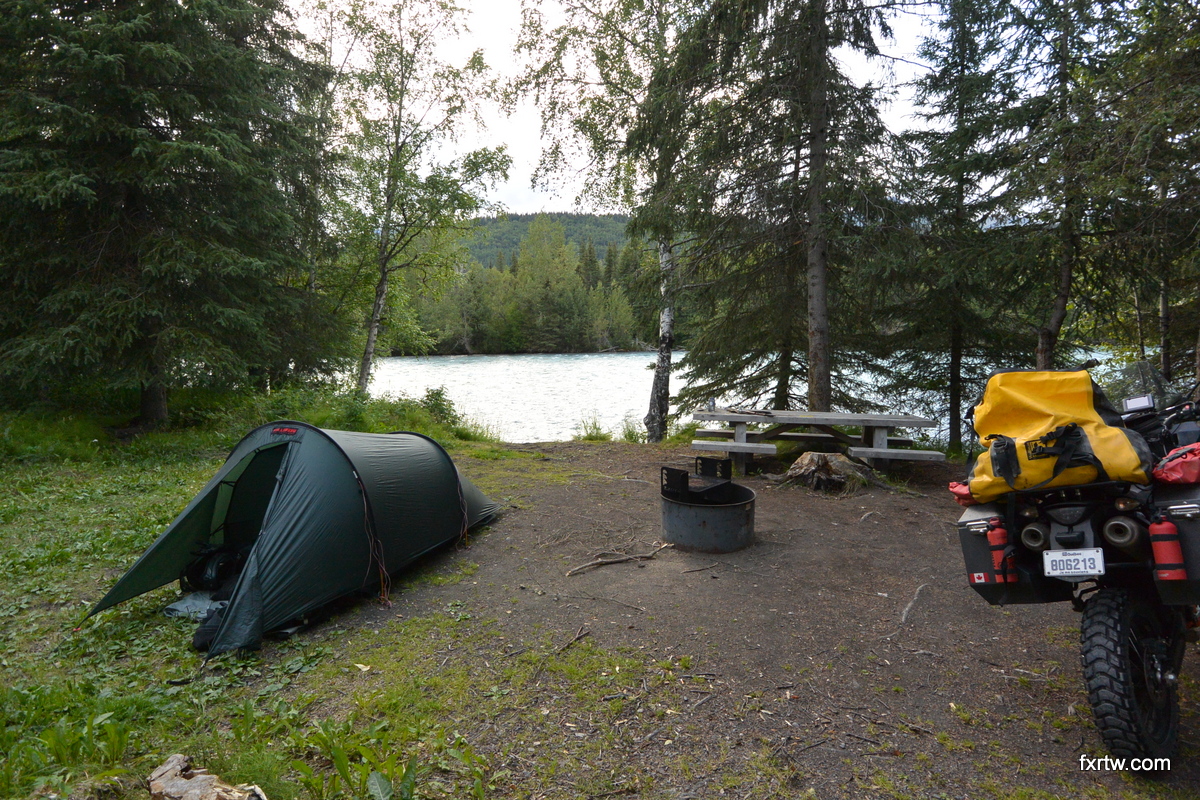 It was raining as we woke up. Leaving around noon, it was more work on the bike. Even though better than 3 days before, the road was still wet, muddy and slippery. We reached pavement around 5pm and I couldn’t help how much I was smiling to be done with it. I red many guys on forums saying it was the best ride of their life: we definitely don’t have the same tastes. Even if it was somewhat beautiful and different, other dirt roads are nicer to ride and more scenic. We camped at the same campground we were at before in Fairbanks.