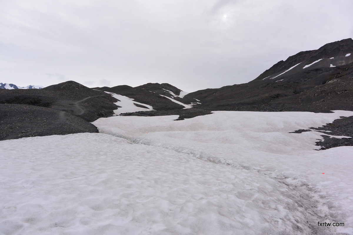 I spoke with a man in the morning who told me about a creek packed with red salmons. So I rode up there and saw them shining in the creek. I got a little too excited and started walking in the creek trying to get a picture under water. I got all wet and stopped there for a few hours trying to dry my stuff. I then rode to Seward. Road was beautiful as I came down the mountains filled with snow and glaciers. I had lunch there before heading back to Exit Glacier. I pitched my tent in a free campground before starting the hike up. It was 4.2 miles up and the lady at the visitor center was nervous about me hiking up there so late. She said it would take me at least 3h to go up. I then picked up the pace until about ¾ of the way and 1h10min later. That is where I saw the goats for the first time and started talking to people. I met Morgan who was 19 and hiking from Anchorage to Seward all by herself. We went up to the top and ate some food. The view up there was phenomenal. We met Eva and her parents before going back down. Eva followed us as she did not want to sleep at the top. We arrived at the bottom around 10pm after seeing goats and a black bear. They both wanted to sign my map and then we went to sleep.