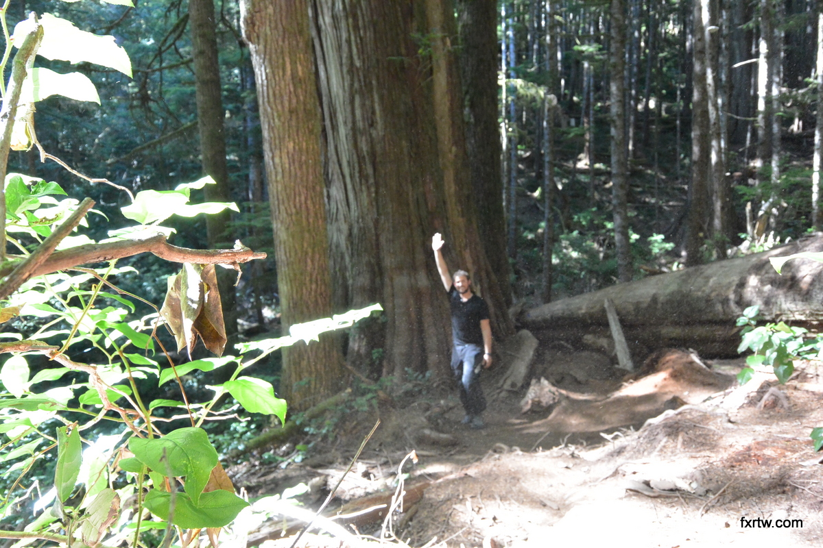 I wanted to take the back roads to Victoria as I had been told. I entered port Renfrew in my GPS and it found all the roads automatically. They were old logging roads that had been built for cars now. They were running in the middle of rain forests and were very twisty. I felt like I was in a scene of Lord of The Rings. I swam in a lake about halfway to cool down and overall had a blast riding the 170km of dirt roads to port Renfrew. There, I had a great sandwich and was told to go to Avatar Tree. I did and I ended up in a forest of ancient western red cedars. It was quite a sight as I had been hearing about them since I am a kid. Avatar tree was very gnarly and huge. I then rode along the coast to a campground by a beach 60km out of Victoria. There, I had dinner, went for a run and then called it a day.