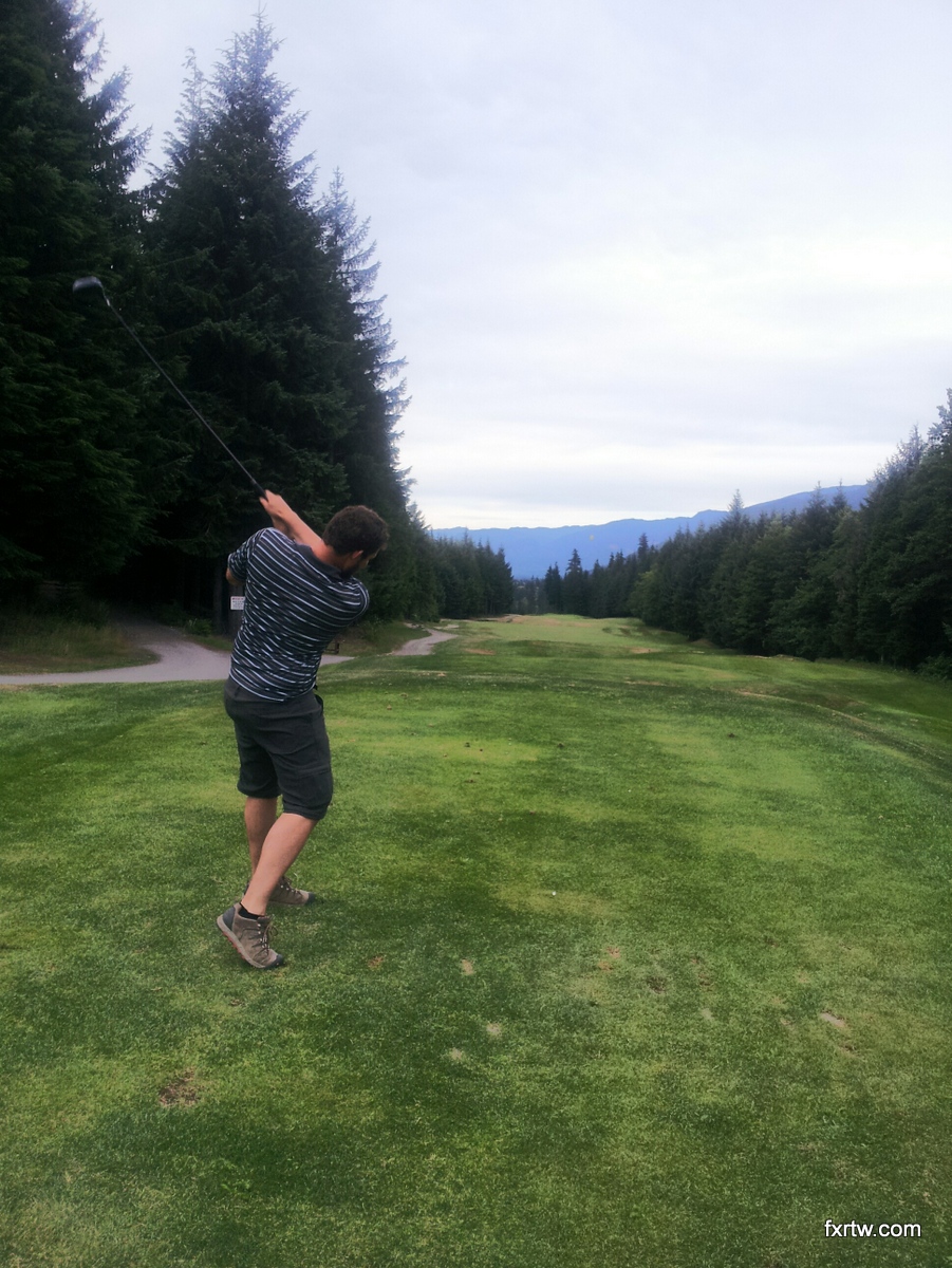 Olivier had made arrangements so I could visit the project he is working on. Rio Tinto Alcan are building a new aluminum plant for 3B$ in Kitimat next to the old one. We left early and he dropped me off at the training center to get basic training for visitors. After completing my computer tutorial, he took me to the factory where he works. Unfortunately I will have to stop writing about it right now to keep him from getting in trouble. What I can say though is that I was really impressed with everything I saw. It was way cool everywhere I looked. At many points during the visit, I kept thinking that things were over designed and too expensive for nothing. I guess that is the way you build a 3B$ factory… All the best stuff I used to use at my job back home were there, except they were 3 to 5 times bigger. He took me back to the apartment after lunch so he could work on his stuff while I worked on some of mine. I went out for a run and we went golfing when he came back. It was a very fun evening as we lost way too many balls. Good news was that they were practice balls that came with the rental/green fee package. Back at the apartment, one of Olivier’s co-worker caught 5 really nice fishes in the nearby river and we took them up in his freezer. Then we had a few beers and went to sleep.