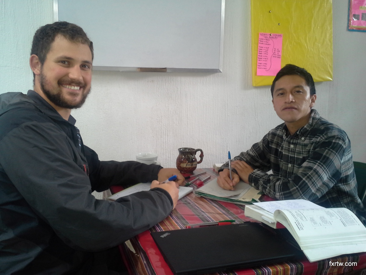 Around 7h15am, someone woke me up by progressively knocking on my room’s door. I stupidly answered in English before realizing that I was in Guatemala. After breakfast and hot tea, I walked to the school in less than 3 minutes. Arriving 10 minutes before 8am, many students were already present to be assigned with their private teacher. We were 5 new students that morning and I was the last one to get paired. Fortunately for me, the reason was that my teacher was actually one of the oldest teacher and was in charge of assigning students to other before himself. Fernando and I walked to his table and started discussing (slowly) about various subject. It didn’t take me long to understand that he was a great Spanish teacher. He had been teaching Spanish to foreigners for over 3 years and he didn’t need to look stuff up in his files to know what to do next. Although physically very different from each other, Fernando and I shared many values that we would discuss during the next three weeks.