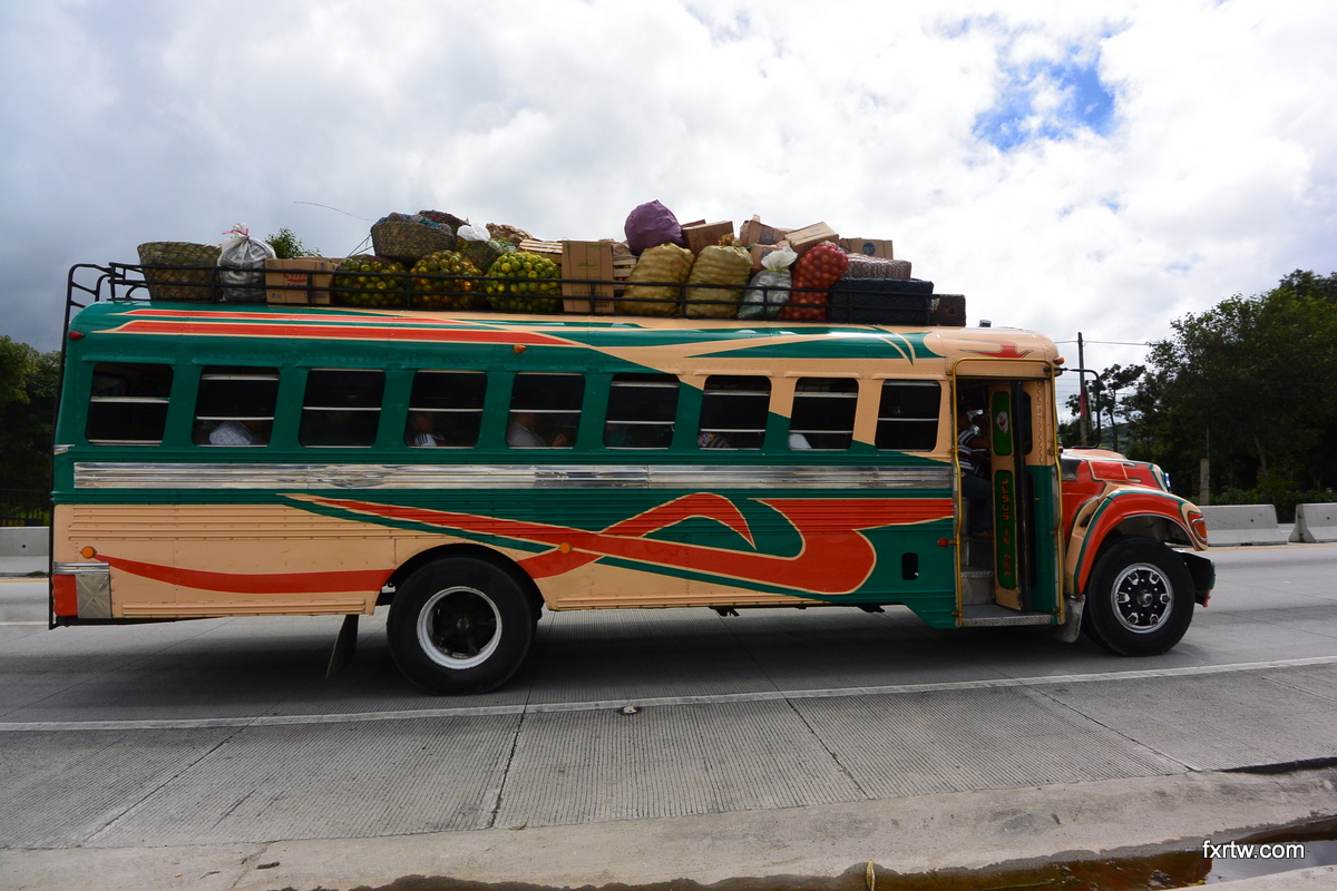After school, I had lunch with my family and shortly after, I was ready to drive to Antigua. I needed to be in Guatemala City early the next day and booked a room in Antigua that night in order to reduce the distance in the morning. The drive was unique. I spent way more time leaning into curves than I did riding upright. If you like riding curvy roads, you are going to love the highway between Xela and Guatemala City. Although, with the Friday night traffic and crazy chicken buses, the ride needed quite a bit of attention. The bus drivers are just insane in Guatemala. From their engine sound, I believe they must chip the engine in order to go faster. I am not kidding when I say that they drive them like race cars. Fully loaded with people and tons of stuff on their roof, they take the curves at almost the same speed I do. The worst thing is that they do not care much about other cars and keep cutting corners by taking the inside line. I would only past them between two curves… I arrived in Antigua as the sun was setting. Its cobblestone streets and colorful buildings made it look very attractive. I checked in my hotel and parked the bike in an old theater before heading out for dinner. I found a sports bar that was filled with tourists and enjoyed my night there.