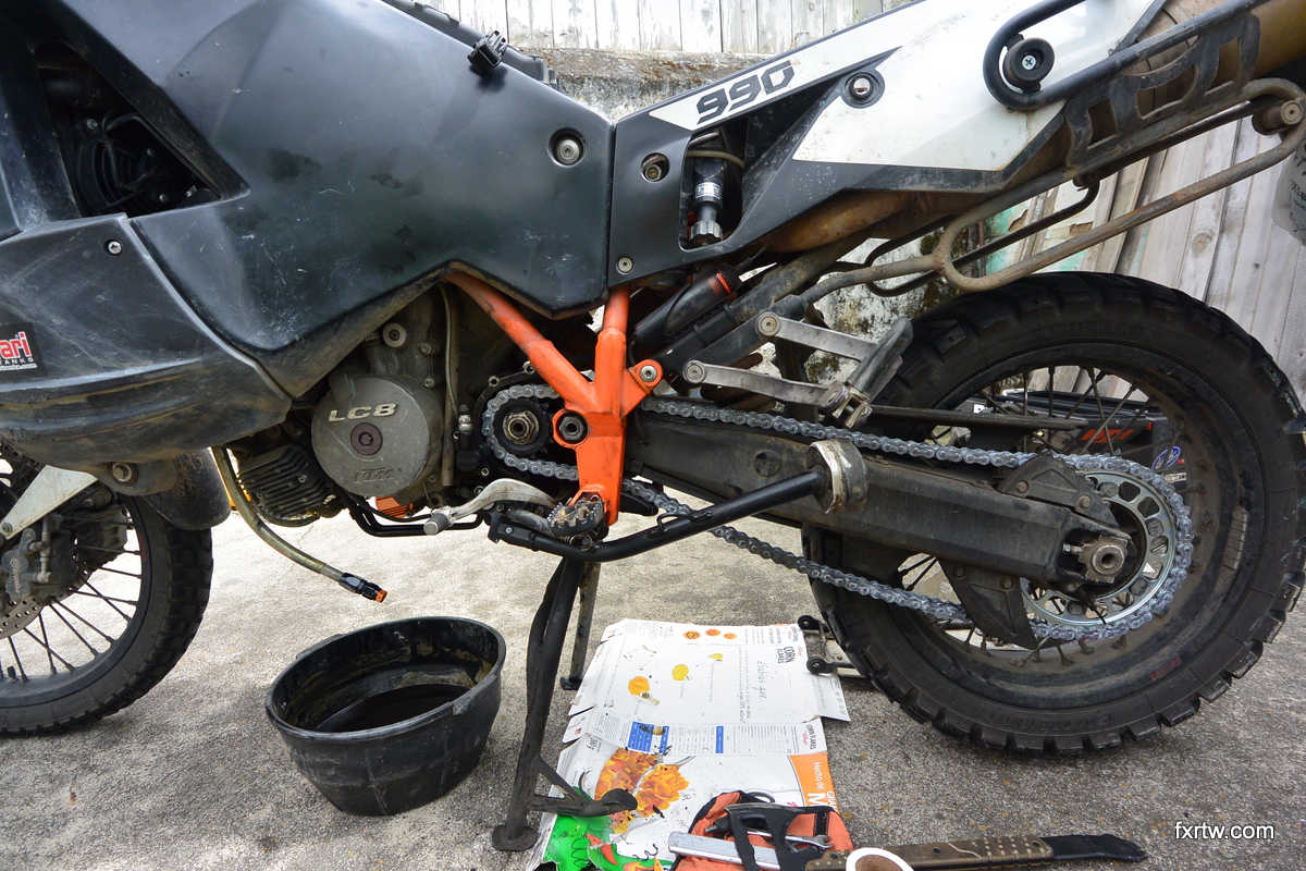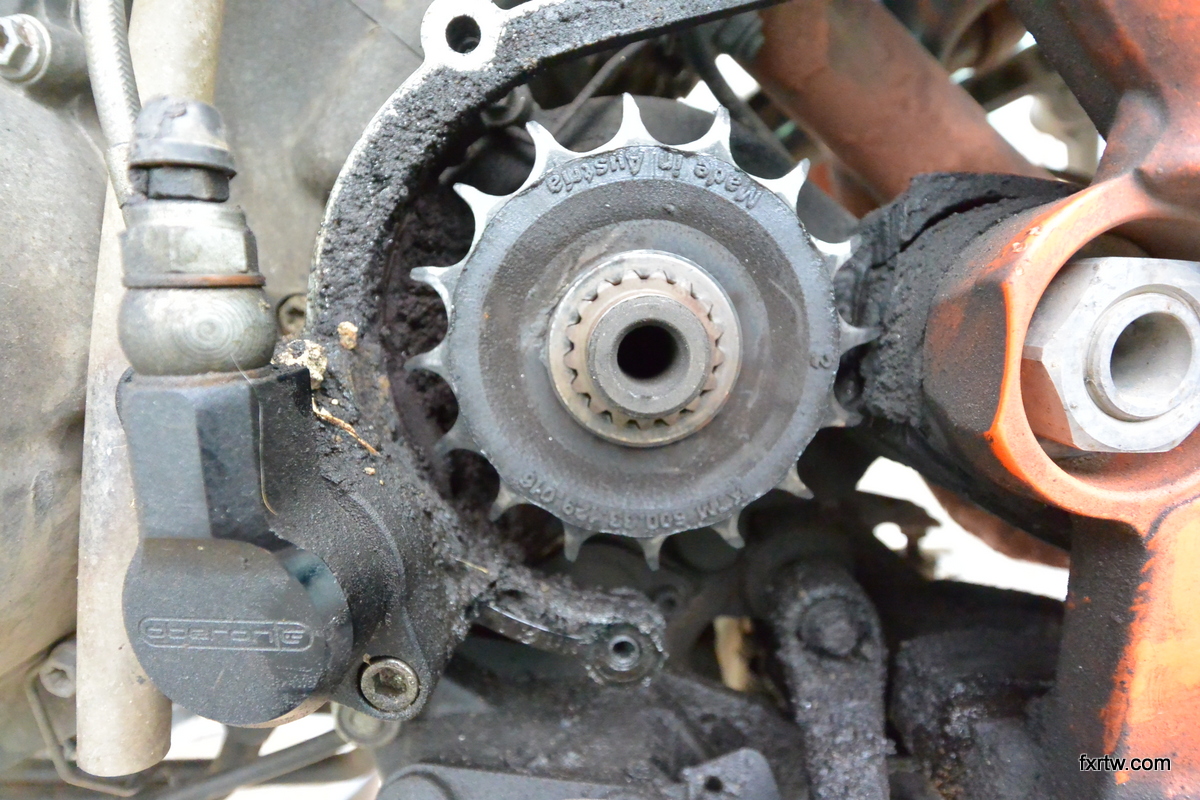 I had been carrying 4 liters of Cepsa 5W-10 synthetic oil from Puebla in Mexico. I really liked their container as they featured a pop-out straw for dispensing. Even though it’s the first time I was using another product than Motorex, I was confident that it will do just fine. I also replaced my front and rear sprockets as well as the chain. I used the engine power to tighten the front sprocket and had to think a little to be able to unfasten and replace my rear sprocket. After a few hours, it was all ready to get back on the road. When coming back to my house that day, I noticed that one of my LED lights was hanging from its power cable. The aluminum bracket I bent back home had failed due to fatigue. I would need to find a way to fix it…
