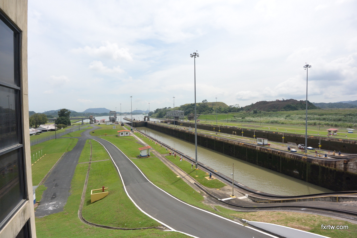 My bike was still behind the steel doors at the Lemon Inn B&B. I took some time in the morning to organize my stuff before heading out to the Panama Canal. It was about 8km away, so not a big ride. I was expecting it to be a major attraction and was surprised to ride a very narrow road up to the locks. There was a big visitor center at the end of this road. I paid the 15$ visitor fee and went in. The locks were on the other side of the building and I climbed to the second floor to have a better view. It was very impressive to think that the whole system had been built 100 years ago. I then met with Ryan and Joel from British Colombia. They were also riders, but took the bus to visit the locks. They were booked to board the same boat to Cartagena the next day. We chatted for a bit and then visited the various exhibition. When leaving the center, we agreed to make plans over the internet for dinner. I spent the rest of the afternoon getting my stuff ready for the next day.