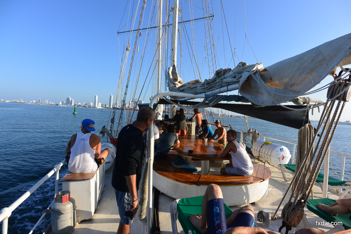 I once again was up around 5am. Cartagena was in front of us as the sun was rising. With good currents and some sailing boost, we made the trip in 24h instead of 30h. I did not complain. Soon enough, the rocking motion stopped and we were floating still in the bay next to Cartagena. After breakfast, we took the smaller boat to get to shore. The custom agent barely looked at each of our face before we headed back to the Stahlratte. We all packed our stuff and went back to shore. Ryan, Joel, Nate and I all took the same cab towards the Mamallena Hostel that I had previously booked. They had space for everyone and we all went out for lunch together after dropping off our luggage. We spent the rest of the afternoon chilling. At night, we ran into most of the ship group who were sitting outside at a restaurant. They were waiting for their passports and we ended up all eating together.